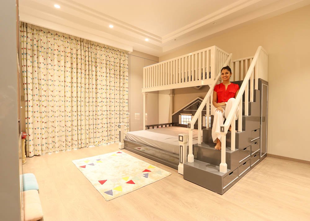 Testimonial – “I got my children’s furniture custom made from Little Nests. I am extremely happy with the complete look of the room. The furniture has such a cozy feel, looks adorable and is extremely practical as there is so much storage! Aayushi was absolutely professional from the start and made it very easy for me by having wonderful ideas about the designing, colour theme, sizing, etc. Not just the furniture but even the selection of rugs, fabrics, curtains, cushions was all taken care of. Her team was also very prompt with the installation and follow ups. The best part was seeing the look of joy on the kids faces when they saw their room! I would highly recommend Little nests.”